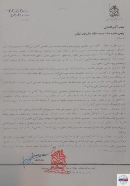 گفتنی است انتظار میرود خانه مطبوعات بعد از این همه تعریف و تمجید یک اسکنر از ارشاد هدیه بگیرد که یک عکس گرفتن از نامه را بلد باشند.